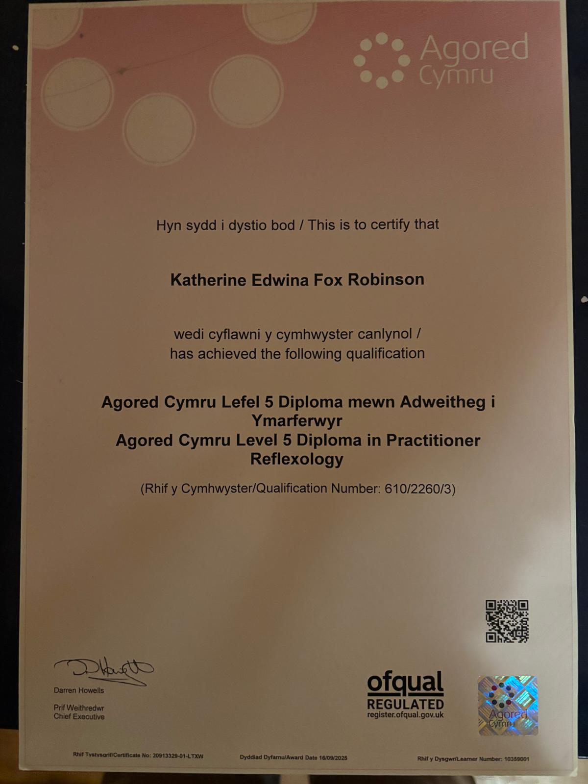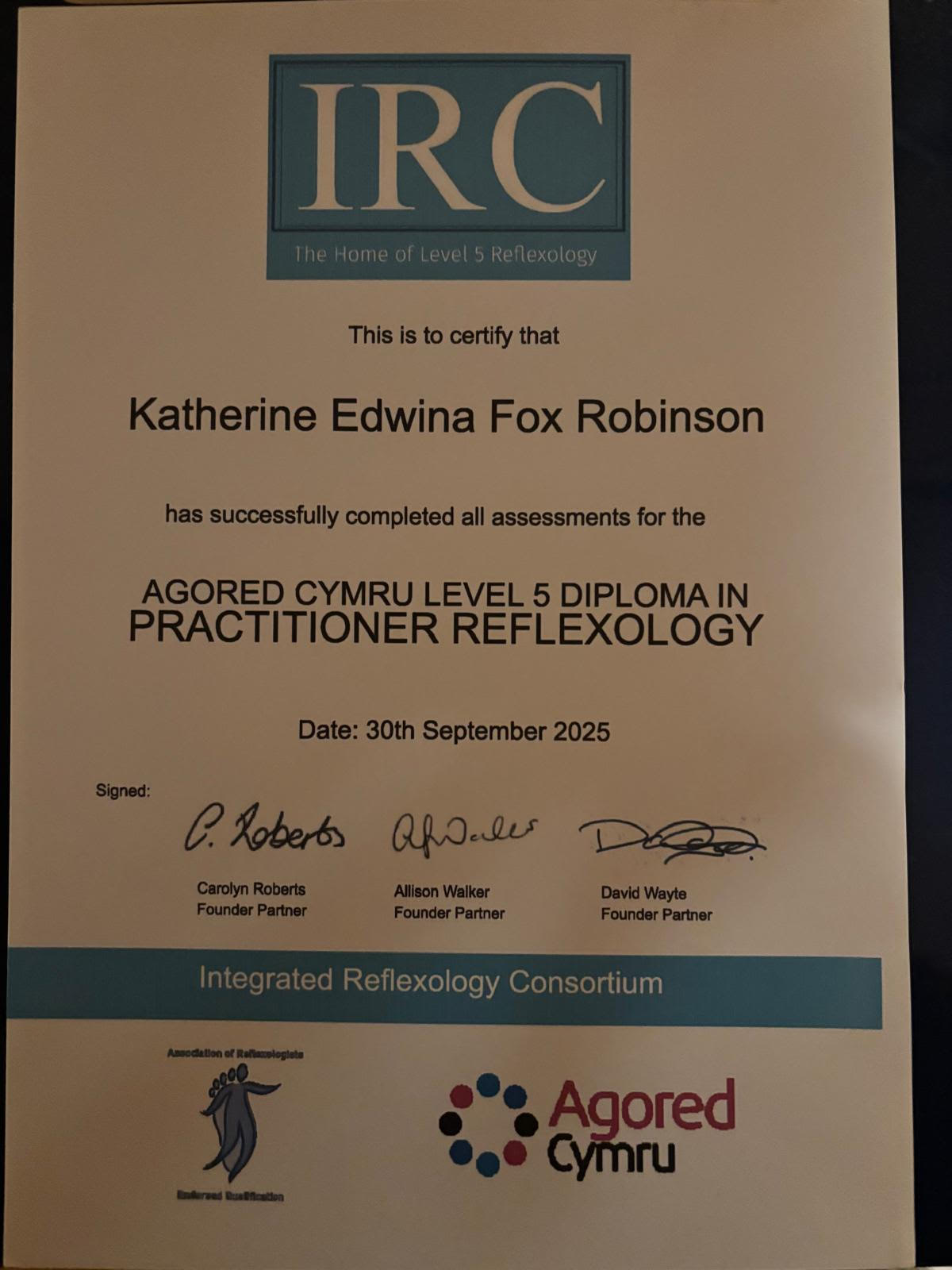 IRC Certificate Level 5 Qualification Qualifications and Training Qualified Clinical Reflexologist GJC Level 5 Practitioner Reflexologist IRC Dip 5